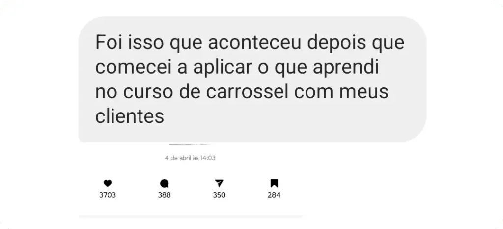 Nem todo mundo gosta de gravar vídeos e aparecer. Com o carrossel, você cria o próprio universo do cliente sem ele precisar se expor.